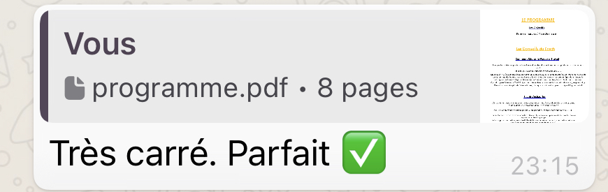 Le programme est créé 100% pour toi seulement, il est unique pour répondre à tes besoins. 8 pages qui vont changer ta vie.
